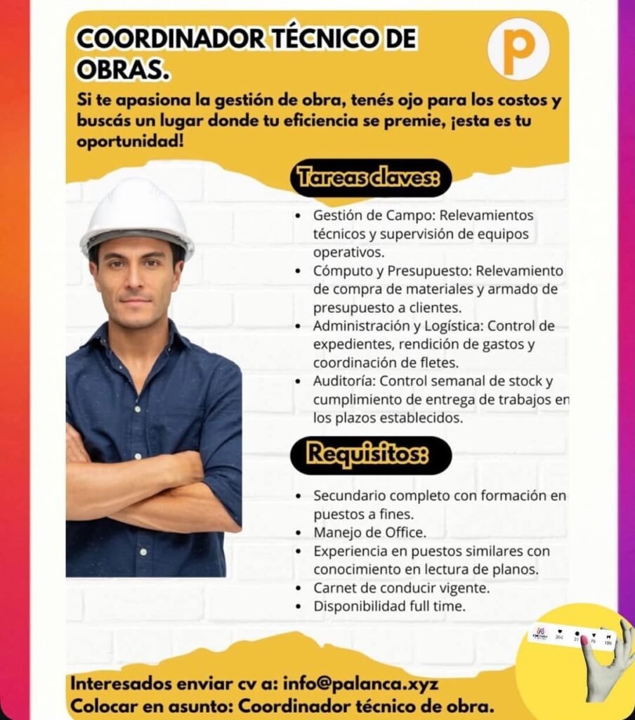 Se busca COORDINADOR TÉCNICO DE OBRAS