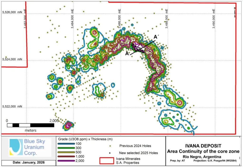 Blue Sky informó resultados positivos en un nuevo análisis del depósito de uranio Ivana (Amarillo Grande, Río Negro), el más grande…