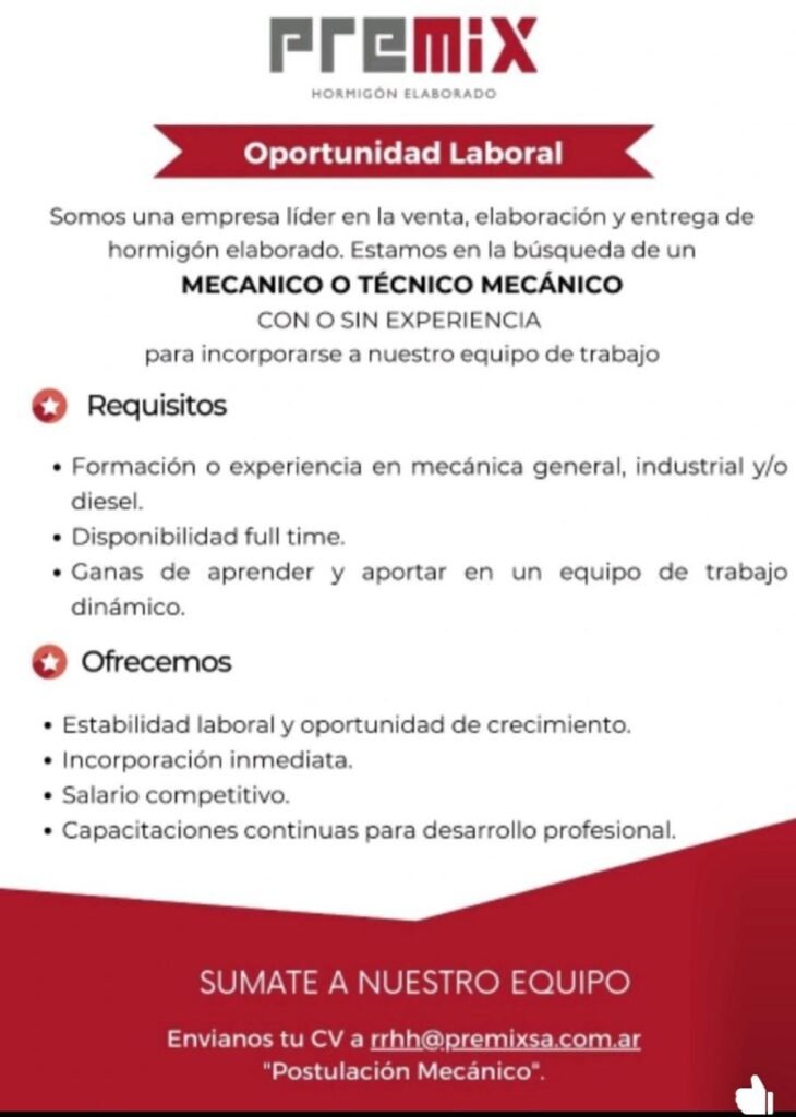 Desde Perfil Industrial hacemos llegar a nuestros lectores las vacantes laborales que nos llegan desde las empresas. Este es un servicio gratuito que prestamos. Cualquier consulta debe comunicarse al correo o al teléfono que aparece en el flyer. Para leer correctamente los datos haga clic en el flyer.