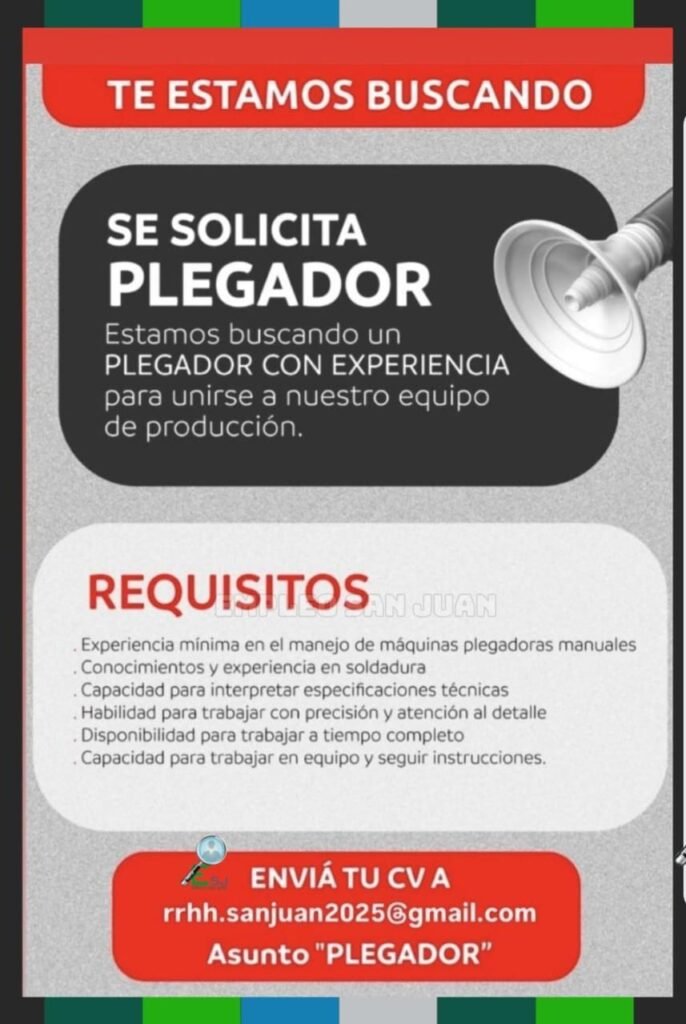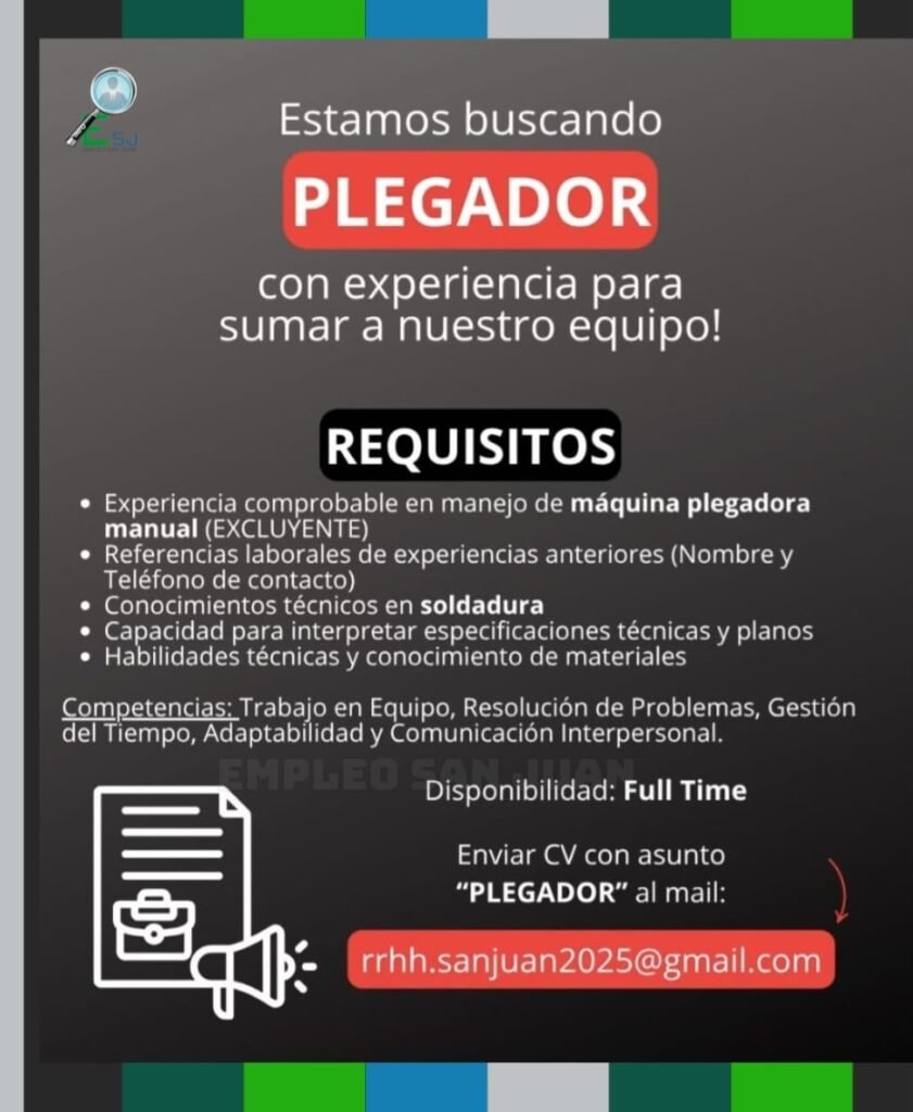 Desde Perfil Industrial hacemos llegar a nuestros lectores las vacantes laborales que nos llegan desde las empresas. Este es un servicio gratuito que prestamos. Cualquier consulta debe comunicarse al correo o al teléfono que aparece en el flyer. Para leer correctamente los datos haga clic en el flyer.
